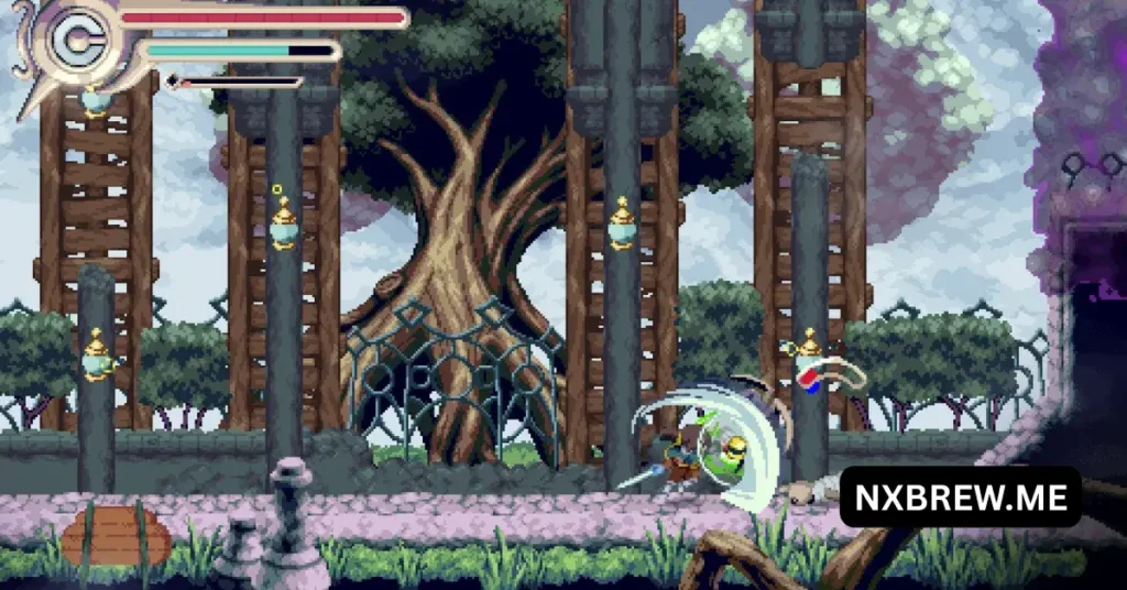 Vernal Edge is a 2D action-platformer that combines fluid combat mechanics with exploration across floating islands. Players take on the role of Vernal, a young warrior seeking revenge against her estranged father. The game focuses heavily on fast-paced battles, allowing players to chain combos, unlock abilities, and explore interconnected areas.